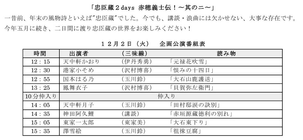12月5日は一太郎、トリを取らせて頂きます。15時35分頃からの出演です。