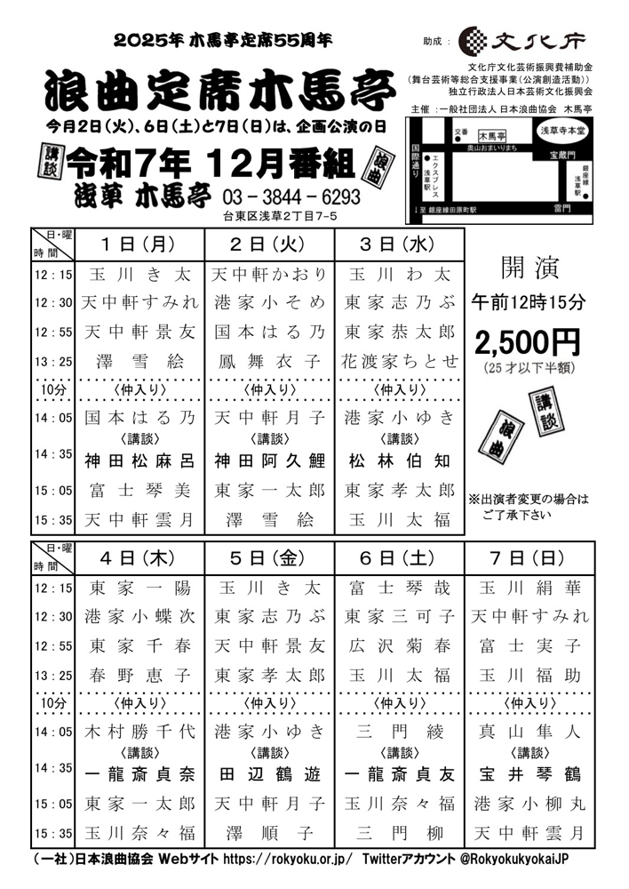 新年早々、木馬亭でお会いできましたら嬉しいです!