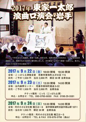 ◆2017年東家一太郎 浪曲口演会・岩手◆