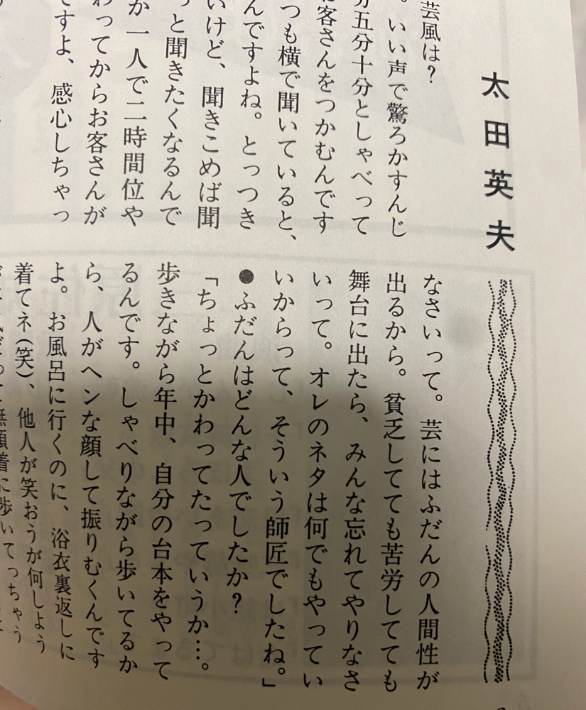 調べ物があって、久々に 昔の月刊浪曲をざっと見していましたら いつの間にか1時間半くらい過ぎました。 お目当ての記事も何となく見つかりましたが 師匠の記事やインタビューはやはりじっくり読んでしまいます。 芸には人間性が反映するから やましい、さもしい気持ちを持つな という言葉が書かれていました。 師匠から直接言われたことはありませんでしたが、...