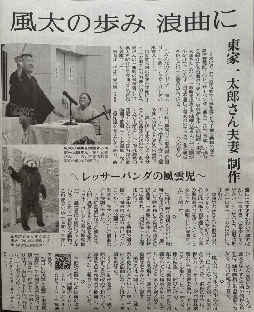 6月23日(金)付、東京新聞朝刊に東家一太郎、美のインタビュー記事を掲載頂きました。