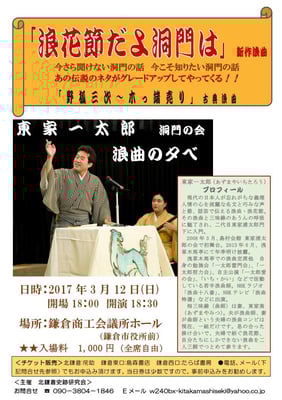 「浪花節だよ洞門は」東家一太郎 洞門の会 浪曲の夕べ