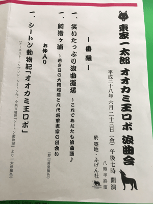 とオオカミ王ロボ メインに浪曲会をさせて頂きました