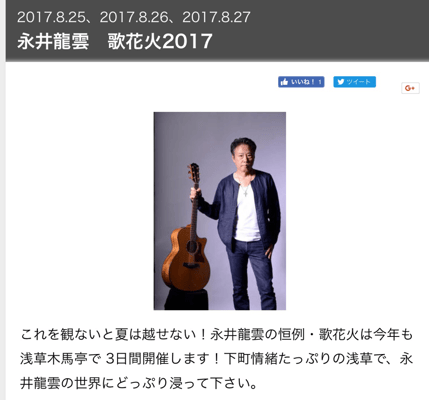 木馬亭でのライブ「永井龍雲 歌花火2017」