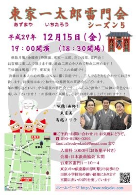 雷門会でお客様に浪曲をお聞き頂き、終演後茶話会で交流させて頂けることが私の浪曲の原点です。