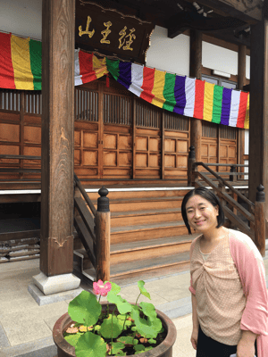 睡蓮の花が咲き、御本堂前には爽やかな空気が流れます。