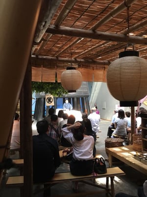 葦簾張りの茶店の床几をお客席に、