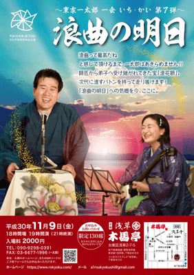 今週金曜11/9夜19時から一太郎の会「浪曲の明日」宜しくお願い申し上げます
