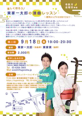 「楽しく唸ろう!東家一太郎の浪曲レッスン」第2回がございます。