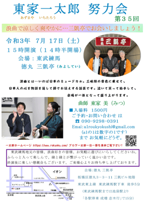 東武練馬お近くの皆様、浪曲好きの皆様、お気軽に遊びにいらして下さいね。