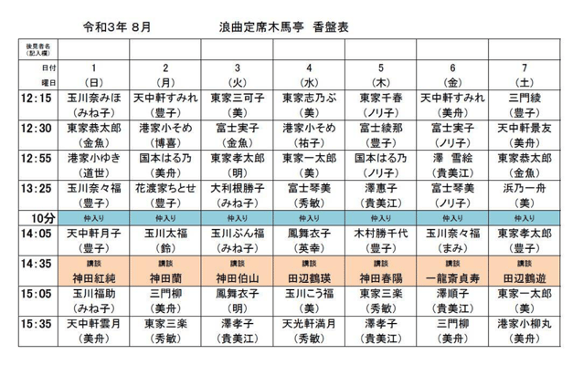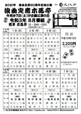 浅草木馬亭浪曲定席8月