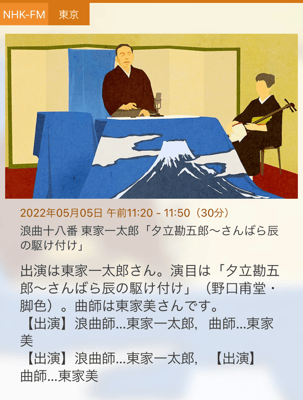 5/5NHKFM浪曲十八番オンエアです