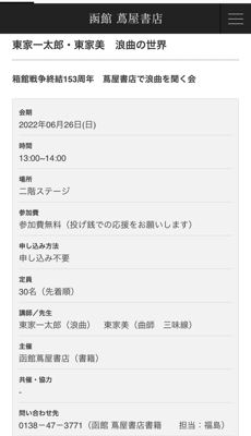 函館蔦屋書店で東家一太郎・美の浪曲を聴く会 2022年6月26日