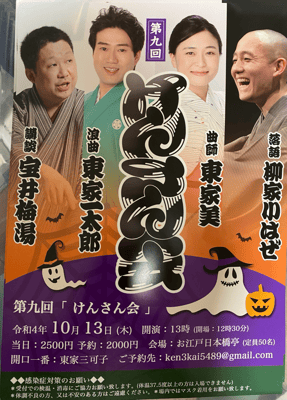 次回は10/13(木)13時開演、お江戸日本橋亭。