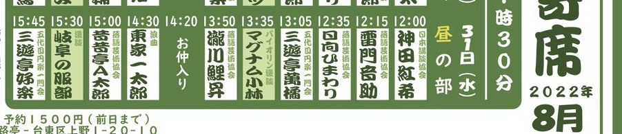 ◆ 永谷しのばず寄席 ◆