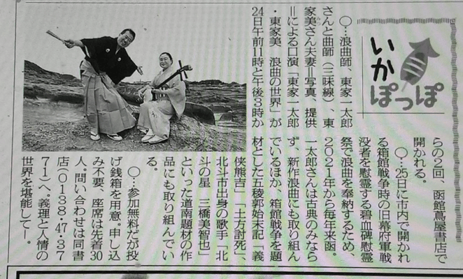 函館お近くの方、是非生の浪曲を聴いてみて下さい