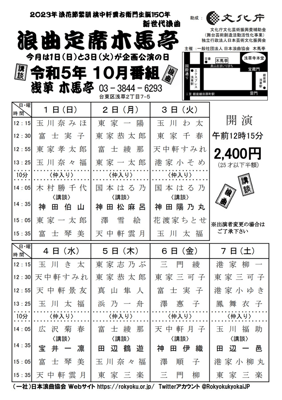 10月の定席も宜しくお願い申し上げます。