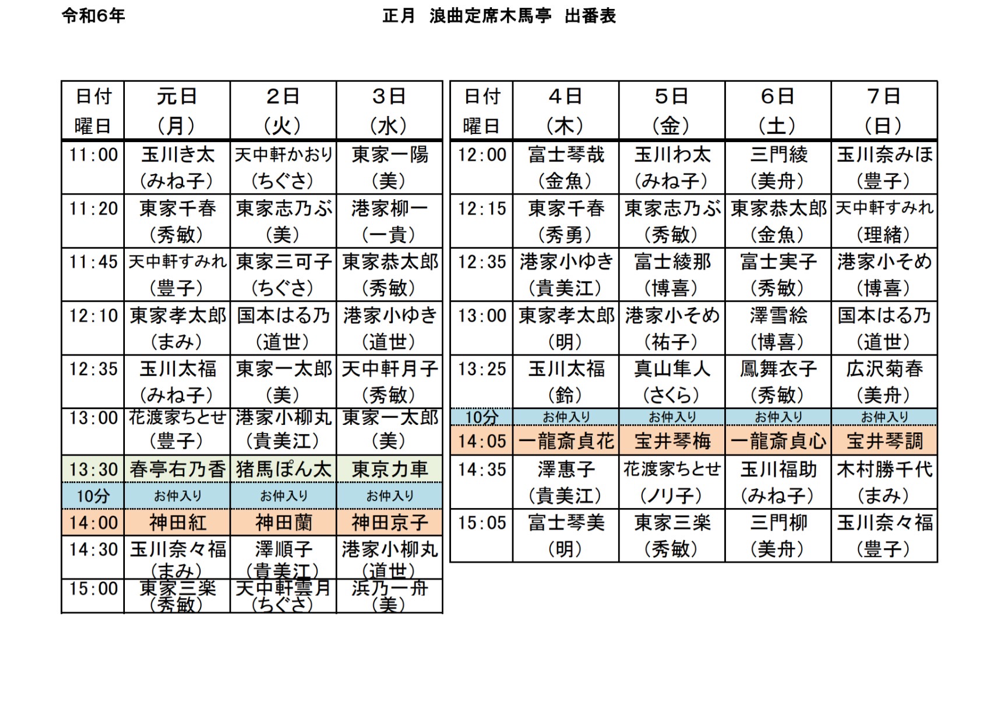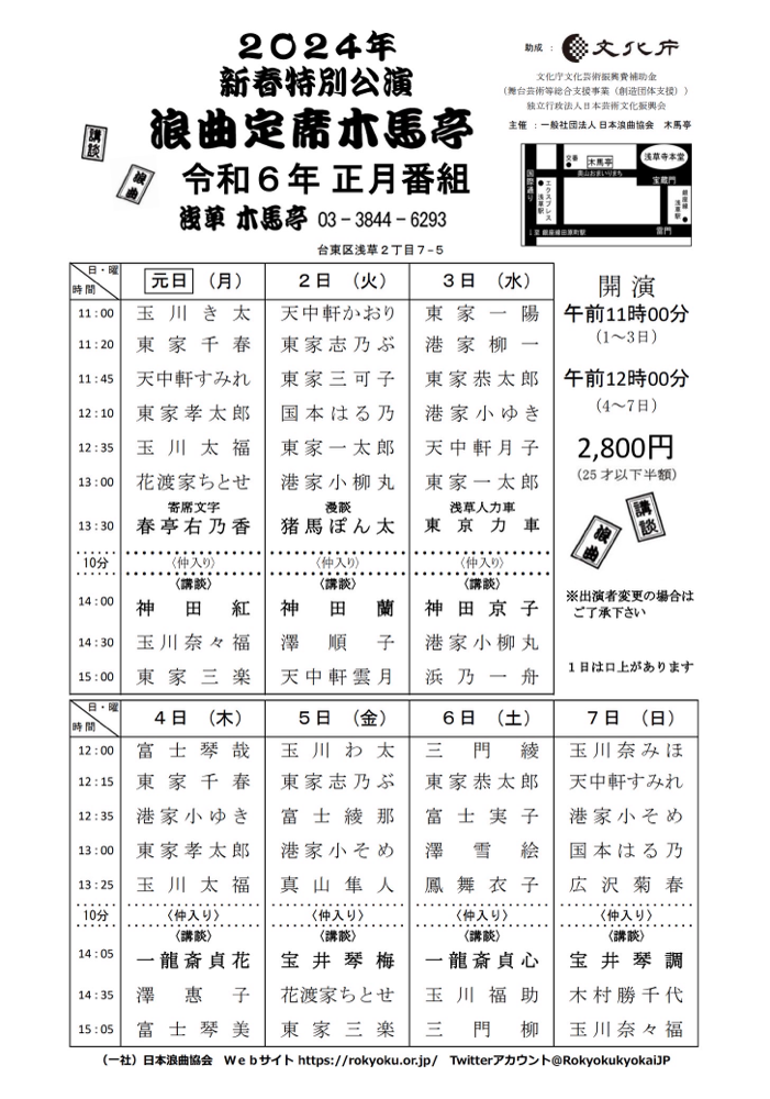 「浪曲定席木馬亭 新春特別公演」