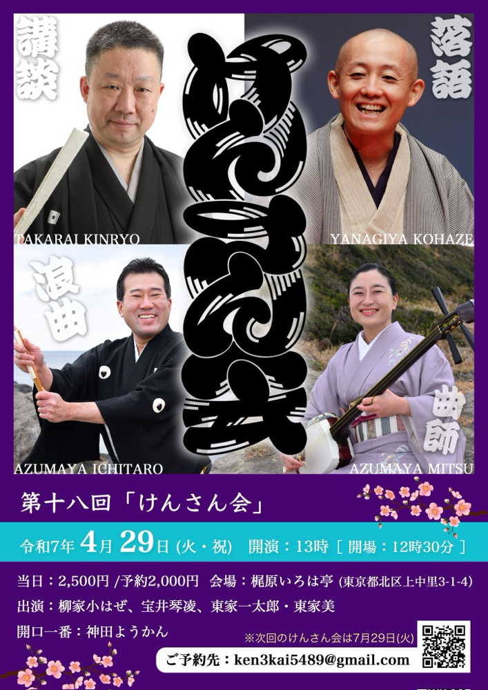 浪曲の東家一太郎・美、講談の宝井琴凌、落語の柳家小はぜの三人による会です。