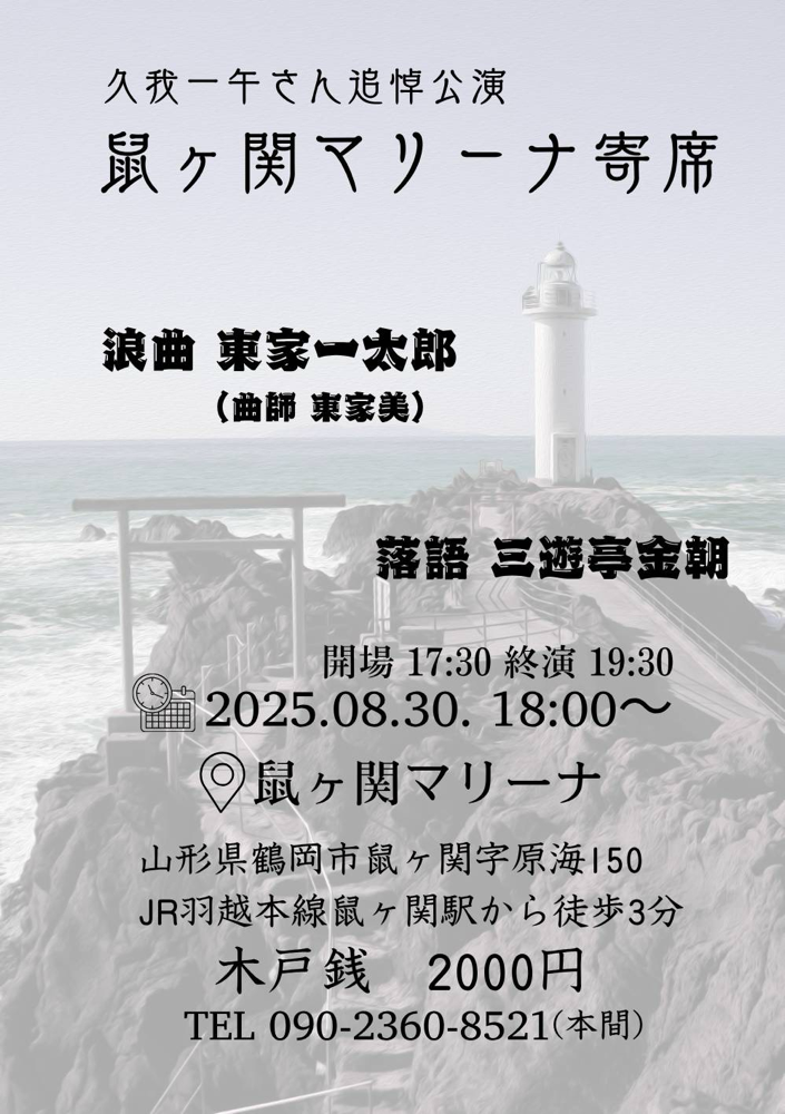 「鼠ヶ関マリーナ寄席 久我一午さん追悼公演」