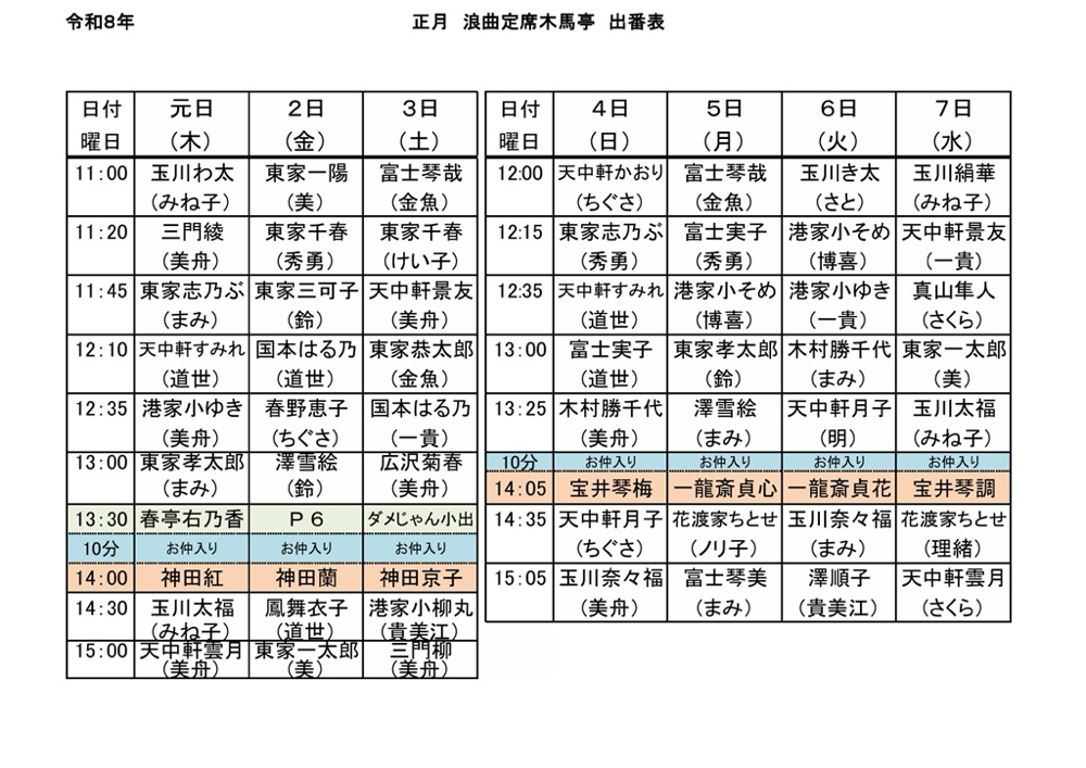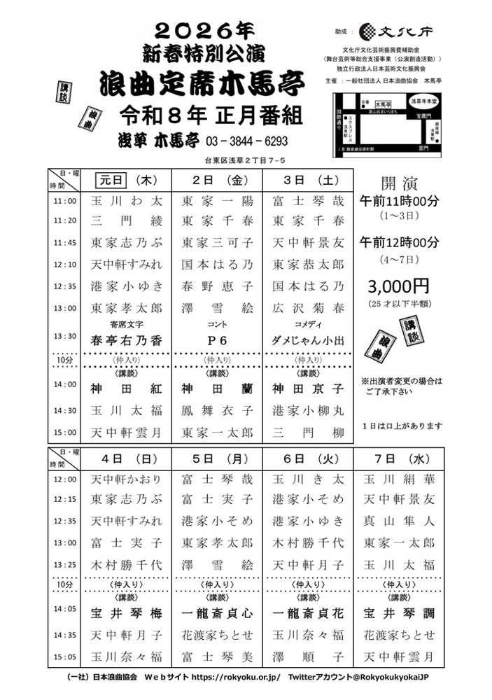 木馬亭について詳しくはこちらをご覧下さいませ正月は特別公演のため、開演時間と料金が変更となります。